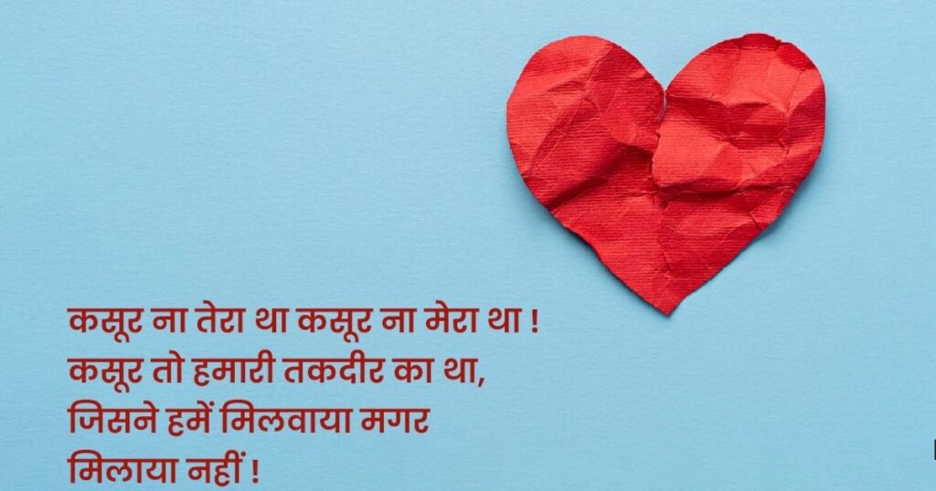 Breakup Shayari helps express feelings when love ends. Everyone feels pain after a breakup. Shayari shows your heart and emotions clearly. You can share shayari, break up shayari, or even 2 line shayari in Hindi. These lines in shayari Hindi connect with everyone who has faced heartbreak. ब्रेकअप शायरी is simple yet emotional. It makes it easier to share feelings online or with friends.