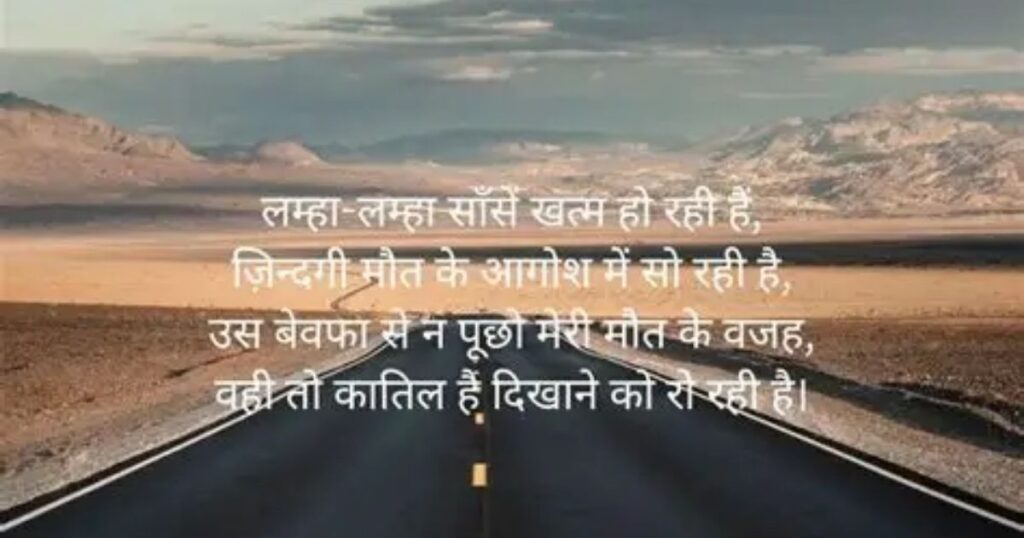 In the end, Maut Shayari is more than just poetry. It is a simple way to express deep pain and real emotions. Many people read Shayari when they feel sadness, loss, or heartbreak in life. It also connects with मौत दुख दर्द भरी शायरी, अचानक मौत पर शायरी, and shayari that touch the heart. These lines show how life and emotions are closely linked. जिंदगी और मौत पर शायरी also reminds us about reality and truth. People find comfort in मौत शायरी when words are hard to say.