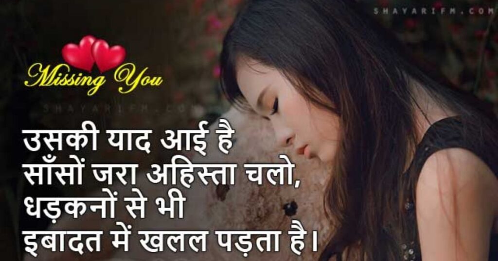 Miss You Shayari helps you express feelings when someone special is far away. These shayari show love, care, and longing in simple words. You can share miss u shayari, miss you love shayari, or shayari on WhatsApp, Instagram, or personal messages. Every line, including shayari, hindi 2 line and miss you yaad shayari, connects hearts and makes your emotions clear.
